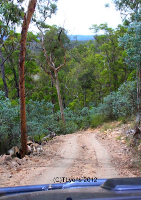 We make our way up the 4x4 only track and head south towards our site. Looking down